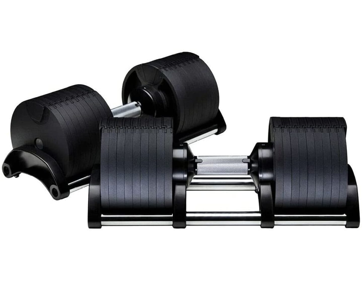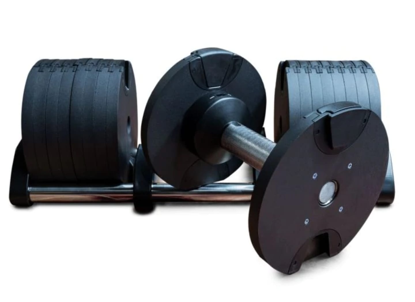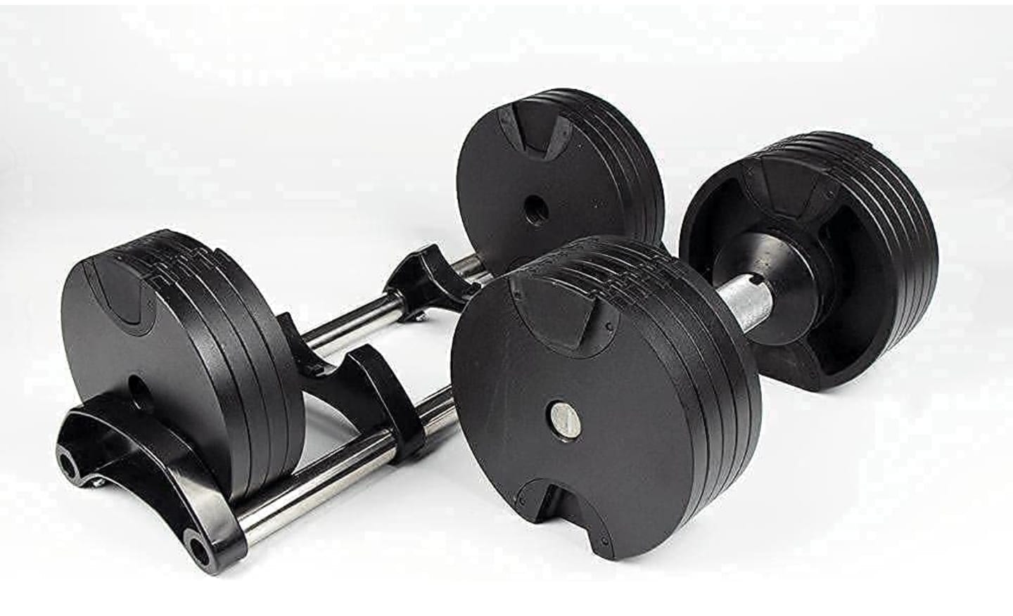 Set de 2 mancuernas ajustables de hasta 40 kg cada una, pensadas para entrenamientos exigentes y progresión avanzada.